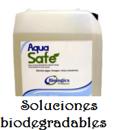 Soluciones para cada necesidad. En algunos lugares, por norma se requiere el uso de cloro, así, nosotros asesoramos al cliente en la utilización de ciertas pastillas de cloro y cloro en polvo, dependiendo de la situación de dicho servicio. Sin embargo, para lugares donde se consume agua de la red municipal, utilizamos AQUASAFE, solución concentrada para el tratamiento de todo tipo de aguas. Excelente solución bactericida, fungicida, algicida y viricida. 100% Biodegradable, su poder tenso-activo le permite tener una gran estabilidad en el tratamiento. Ayuda al tratamiento de la alcalinidad en el agua, evitando la formación de sarro en las tuberías, regaderas y equipos